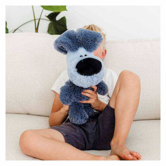 De knuffel is 28 cm groot.